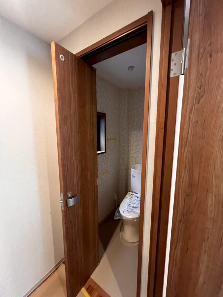 トイレの建具には、トイレ仕様の折れ戸を採用しました。