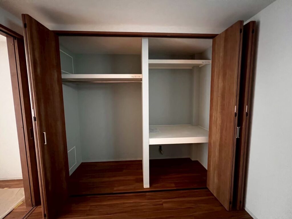 そこで、クローゼットの右側には布団を収納できるよう、中段の高さと幅を調整し、布団を2段重ねでしまえる寸法に設計しました。